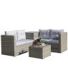 4 Piece Patio Sectional Wicker Rattan Outdoor Furniture Sofa Set with Storage Box Grey