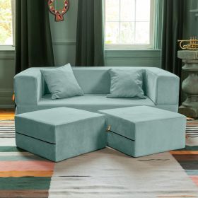 Jaxx Zipline Convertible Sleeper Loveseat & Ottomans, Textured Microvelvet - Caribbean