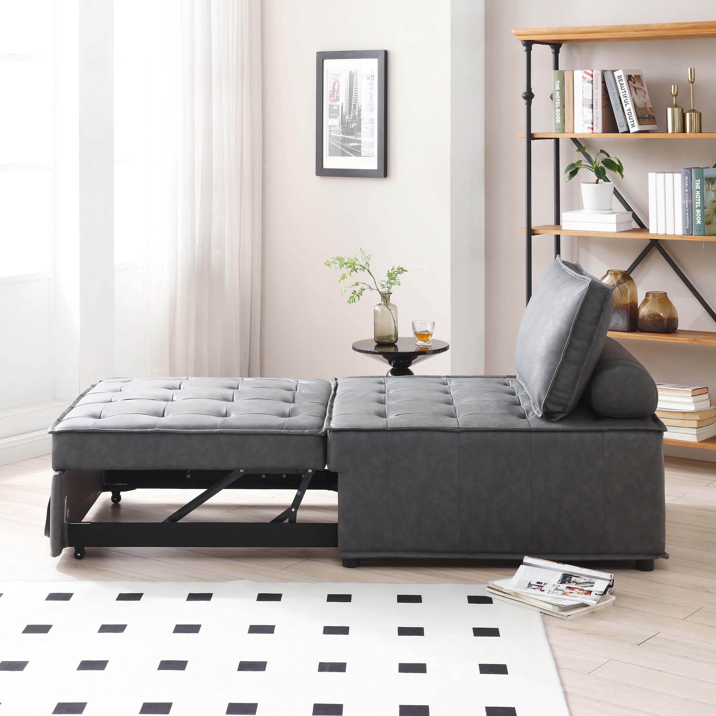 Home > Multipurpose Faux Leather Ottoman Lazy Chair Pulling Out Sofa Bed (Dark Grey)