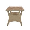 This patio dining table set will be a luxurious addition to any outdoor living area; offering ample space to comfortably seat six people for meals; entertaining; or simply enjoying the great outdoors. The set comprises of a sleek and stylish rectangular table; hand-woven with PE rattan in a classical design that adds a touch of elegance to your outdoor space. The narrow shelf under the tabletop is a convenient solution for storing napkins; plates; and utensils.
