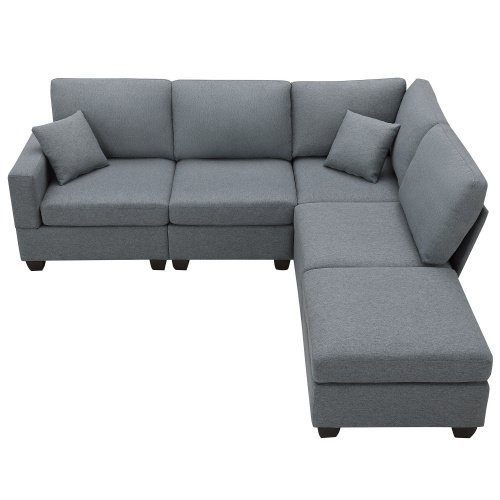 Simple line design allows this L-shaped sectional sofa to be used in a variety of styles.It also has a convertible ottoman, which makes the sofa to have more possibilities and interest.The sturdy wooden frame makes the sofa more stable and durable.