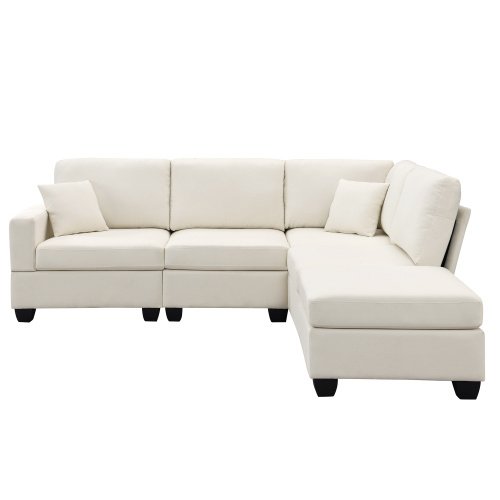 Home > 89.8*60.2" Modern Sectional Sofa,5-Seat Modular Couch Set with Convertible Ottoman,L-Shape Linen Fabric Corner Couch Set with 2 Pillows for Living Roo