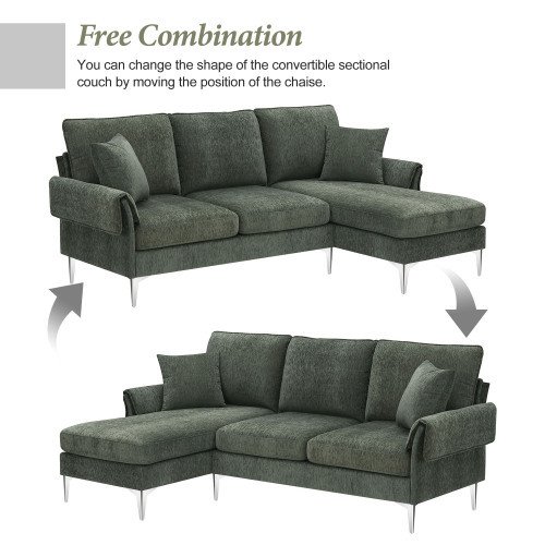 Fit up to four on this sleek sectional sofa, the perfect addition to any den or living room ensemble. Wrapped in Chenille upholstery, this sectional introduces a touch of texture to your interior design, while chromed metal legs round out this piece with a nod to contemporary style. High-density foam cushions give this sectional its medium firmness.