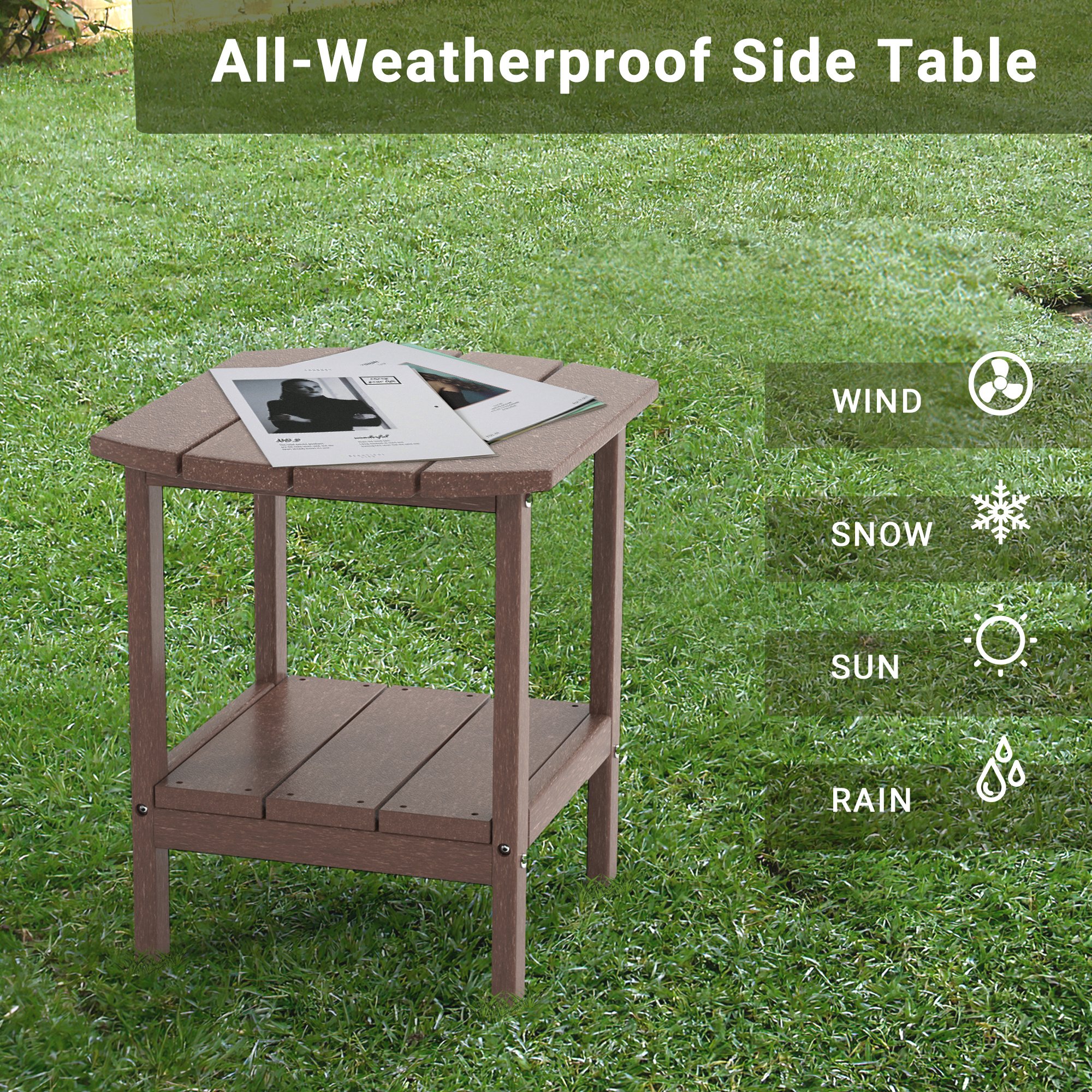 1.[All-Weather Outdoor Side Table] outdoor side tables are made with a high-density polyethylene (HDPE). HDPE Lumber is a recyclable and environmentally friendly material. This material has astonishing performance in resistance to all types of weather. They have exceptional resistance to harmful substances; oil and fuels; salt spray; and other environmental stresses. They do not absorb moisture.