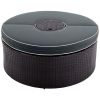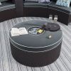 For your convenience, both tables are designed to be multipurpose. The side table is with a middle umbrella hole and two round racks for bottles. The round table is with a middle lidded box for an ice bucket or storaging other odds and ends as well as a thick cushion so that it can be a stool easily